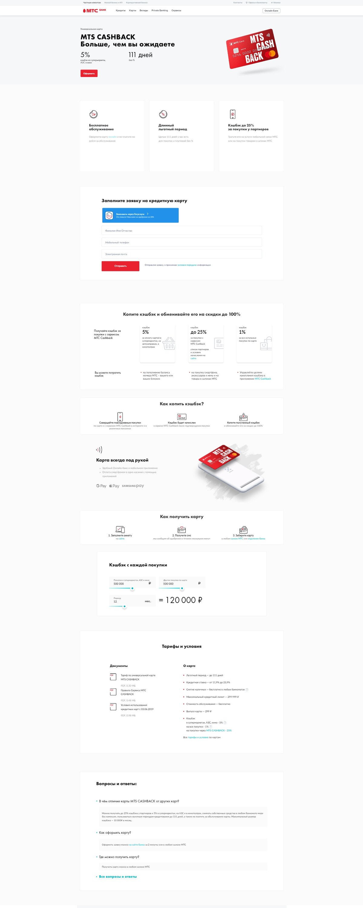 Преимущества MTS CashBack: Бесплатное обслуживание (оформить карту в любом салоне МТС и не платите ни рубля за обслуживание Длинный льготный период (целых 111 дней есть для покупок и платежей без %) Кэшбэк до 25% за покупки (копите кэшбэк и тратьте его на услуги мобильной связи МТС или на покупки товаров в салонах МТС Как оформить кредитную карту MTS CashBack: Оформите карту на сайте или в салоне МТС Сервис МТС Cashback будет подключен автоматически (после оформления карты) Платите картой и получайте кэшбэкза покупки