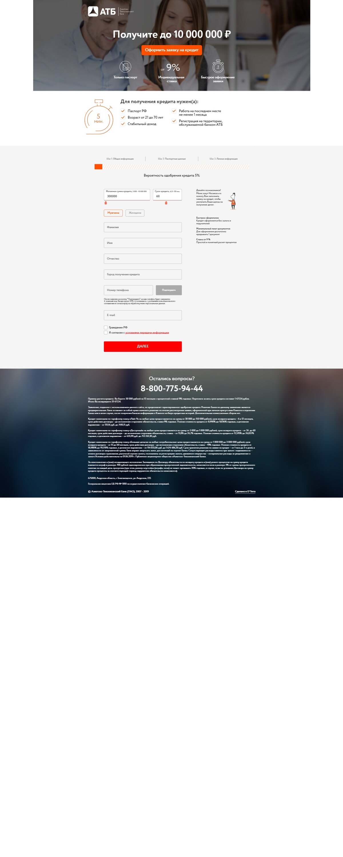 Срок кредита: от 6 до 60 месяцев Процентная ставка: от 9% Документы: Паспорт Гражданство: РФ Для работающих по найму - стаж на последнем месте работы от 1 месяца Для индивидуальных предпринимателей – стаж ведения ИП не менее 6 месяцев Для пенсионеров – регулярное поступление пенсионных или иных социальных выплат.