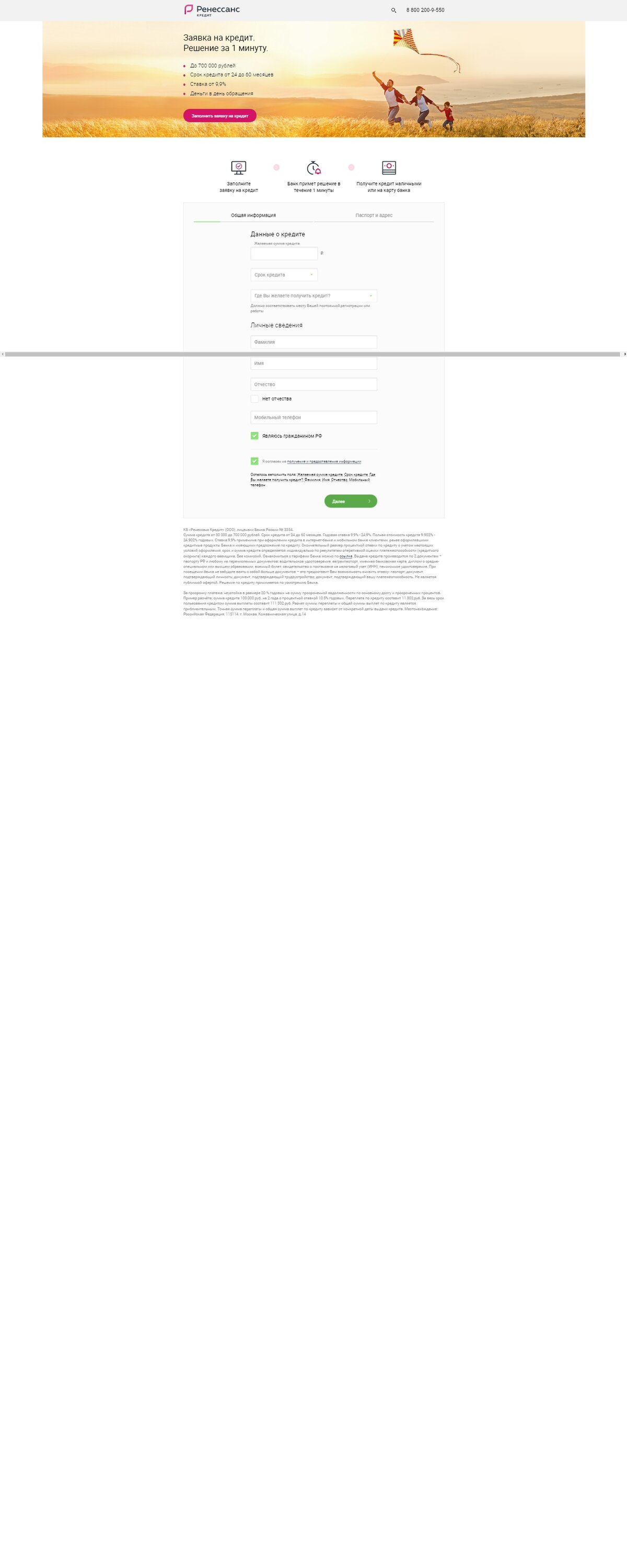 Ренессанс Кредит - кредит наличными