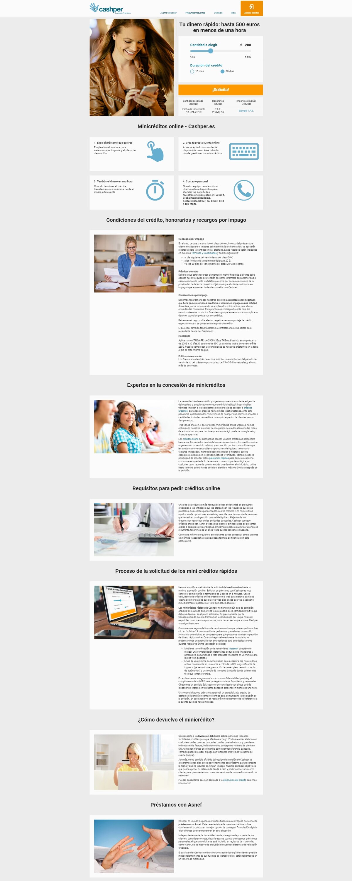 Cashper ES is an online lending company that offers short-term unsecured loans between 50 € and 500 € for up to 30 days.