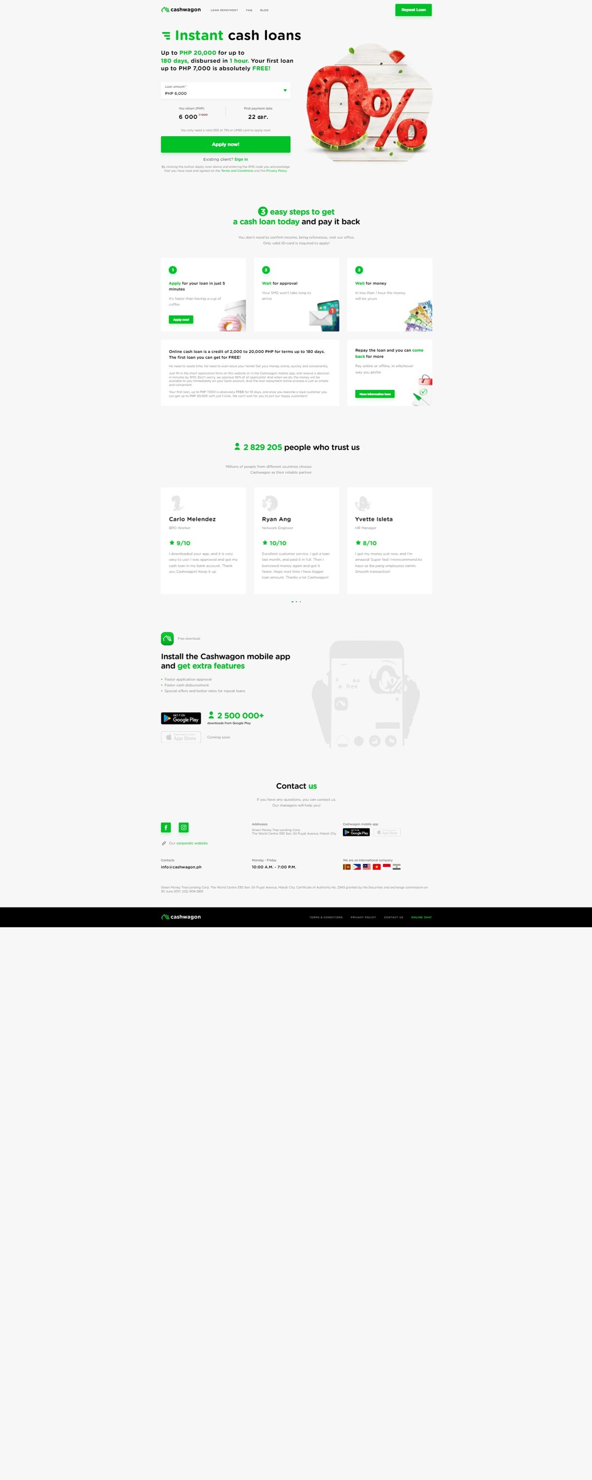 Cashwagon [Mobile APP] PH CPL Cashwagon’s main focus in the Philippines is an online consumer financing wherein we offer access to online cash loans without any collateral requirements, complex approval procedures, or prolonged application waiting time.