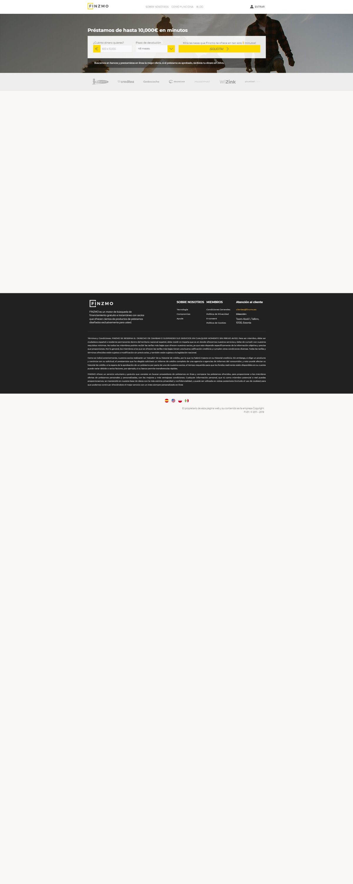 Finzmo ES is an online lending company that offers fast loans up to 40 000 € Finzmo ES has a sophisticated scoring technology that enables to approve applications in less than 15 minutes and offer first loan for free.