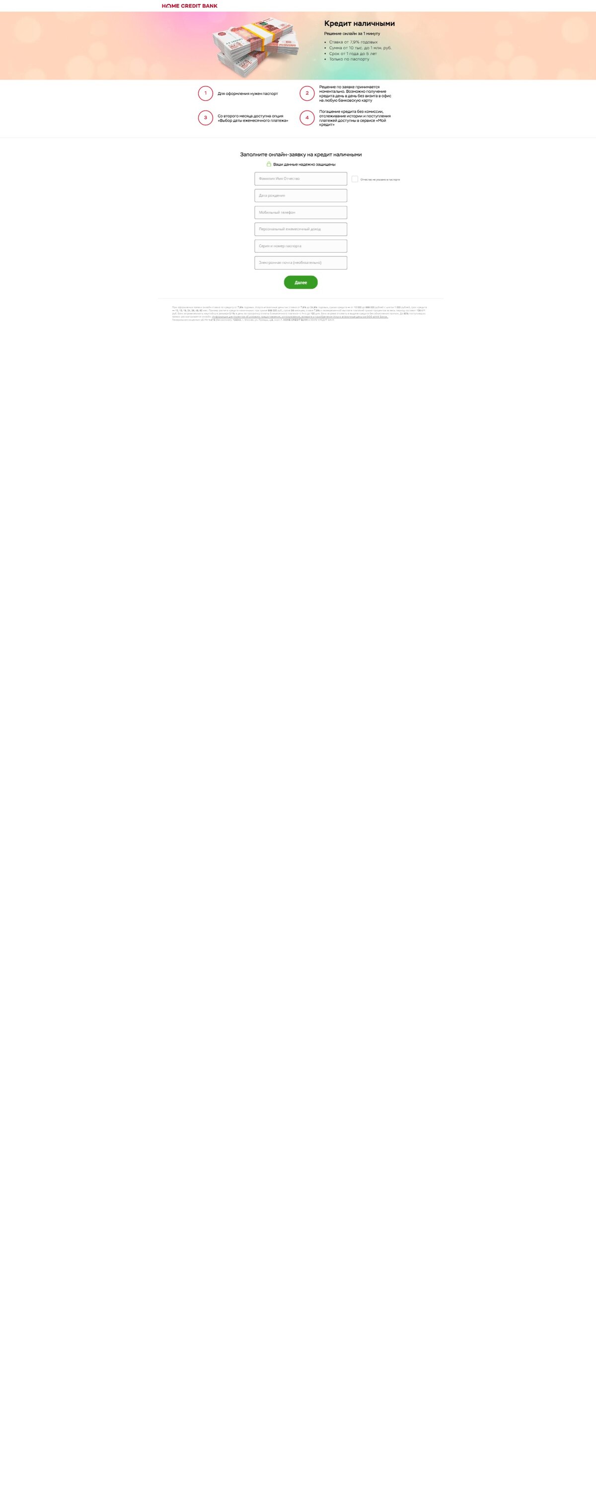 !Внимание, всевозможного вида рассылки строго по СОГЛАСОВАНИЮ, обращайтесь к вашему аккаунт-менеджеру или в тех.поддержку! Сумма от 10 000 до 1 000 000 рублей Срок от 12 до 60 месяцев Ставка: от 9,9% годовых Так же выдаются с текущей посадочной страницы: Кредит пенсионерам; Кредит на ремонт; Кредит на покупку автомобиля; Рефинансирование кредита.