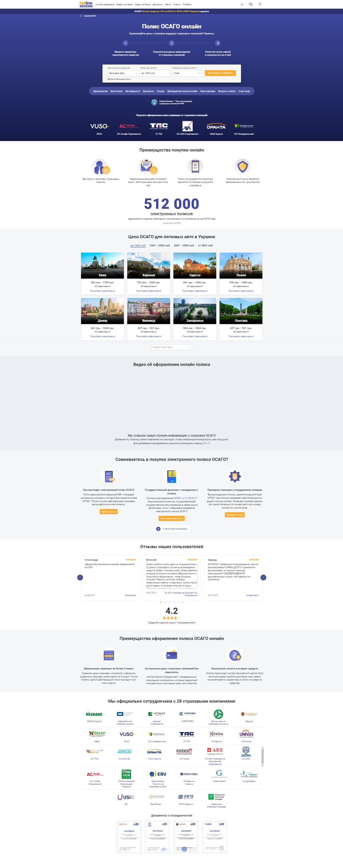 Доступ к продуктам ведущих страховых компаний с любого города Украины.