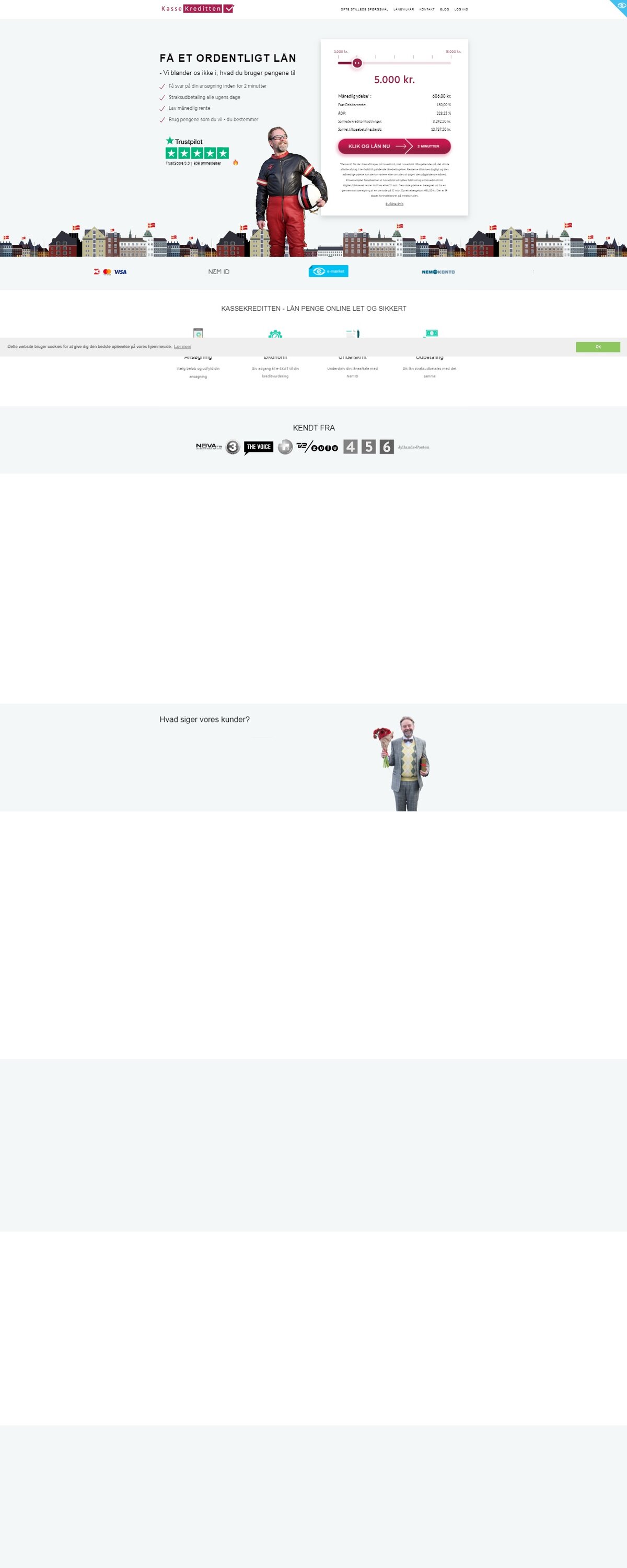 Kassekreditten DK is an online lending company that offers short-term unsecured loans between 3000 KR and 15000 KR for up to 12 months.