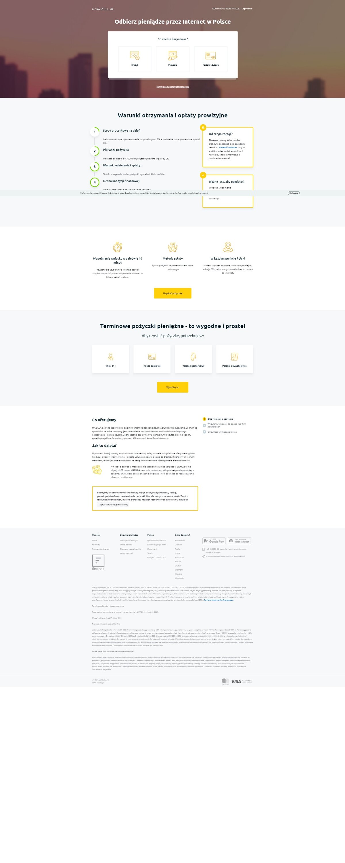 Mazilla PL is an online lending company that offers short-term unsecured loans up to 2000 PLN for up to 90 days.
