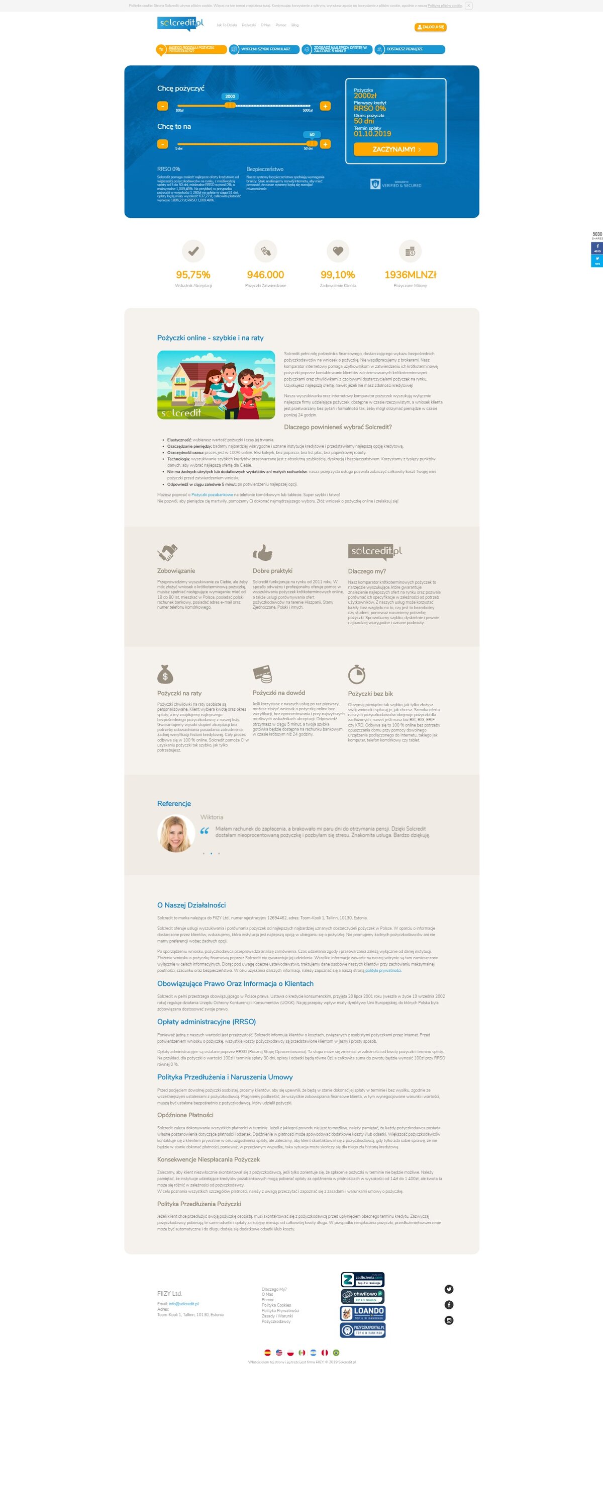 Solcredito PL is an online lending company that offers short-term unsecured loans between 100 PLN and 5000 PLN for up to 50 days.