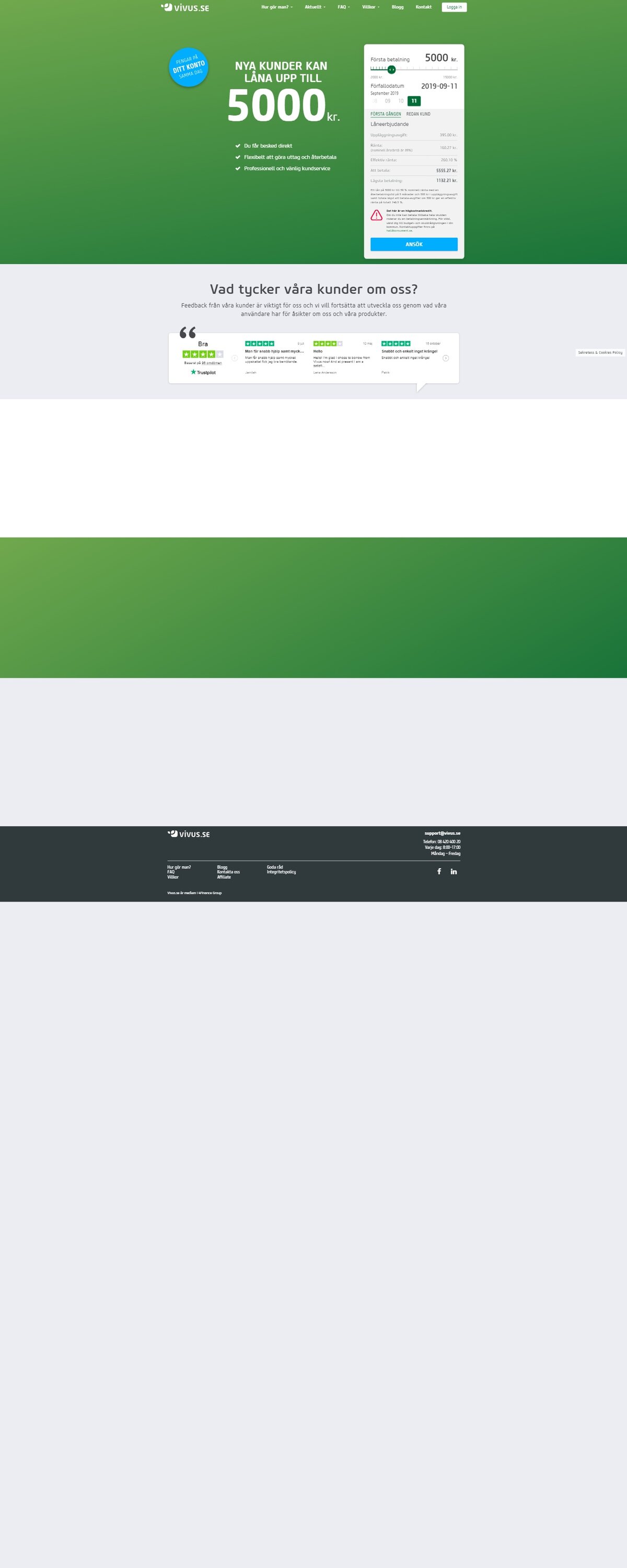 Vivus SE is an online lending company that offers short-term unsecured loans between 2000 kr and 15000 kr for up to 30 days.