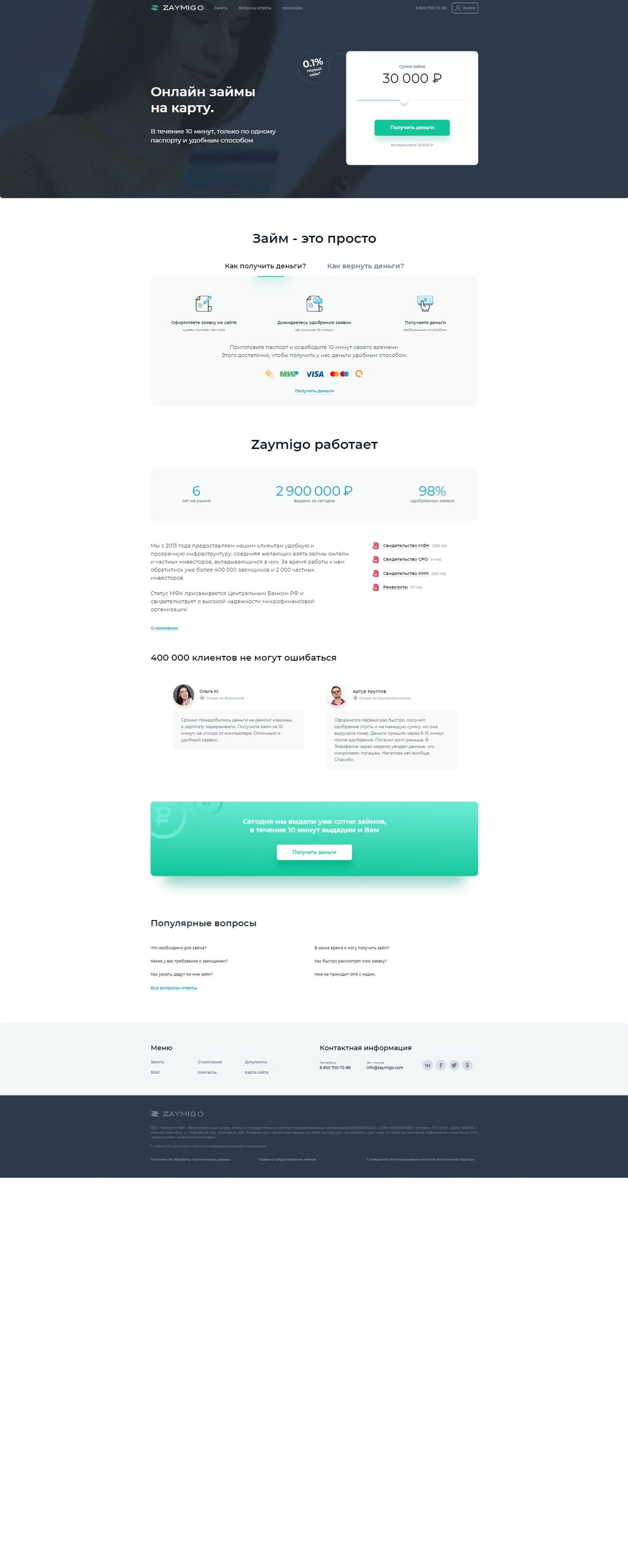 Zaymigo — это сервис по выдаче моментальных онлайн займов до зарплаты.